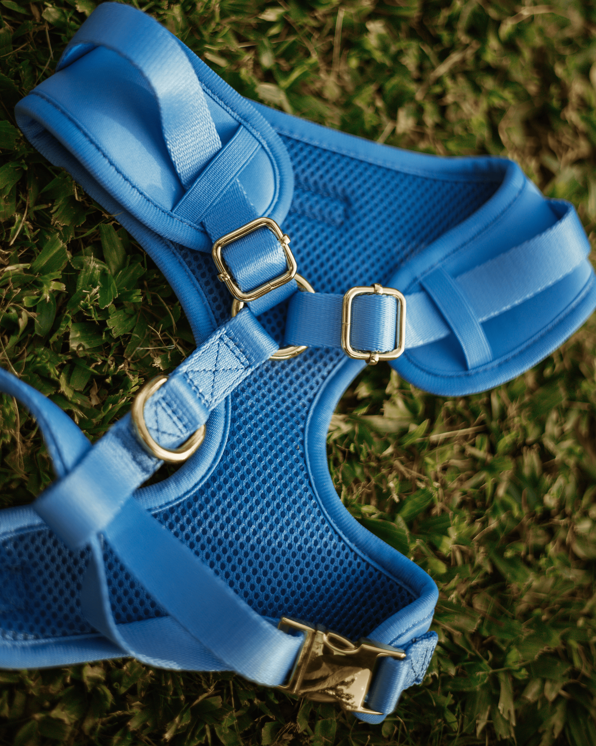 O arnês perfeito para passeios confortáveis e cheios de estilo.